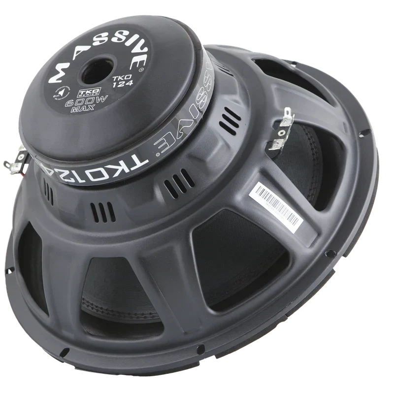 Bass can be an emotional connection to the music. But, you want to make a logical choice when it comes to subwoofers. Above a starter sub, while not needing gobs of power, our Massive Audio TKO124/12S4 slots right in perfectly. A proven design that for years, has provided many installs with deep bass that really brings out the entire song. At the same time, bringing great value to all of those people wanting great performance from the low notes. The TKO Series plugs into our line up between the value ECO series and the all around killer MMA series. Sharing a nice balance of design and traits between the two, creating an outstanding result in the TKO124/12S4.